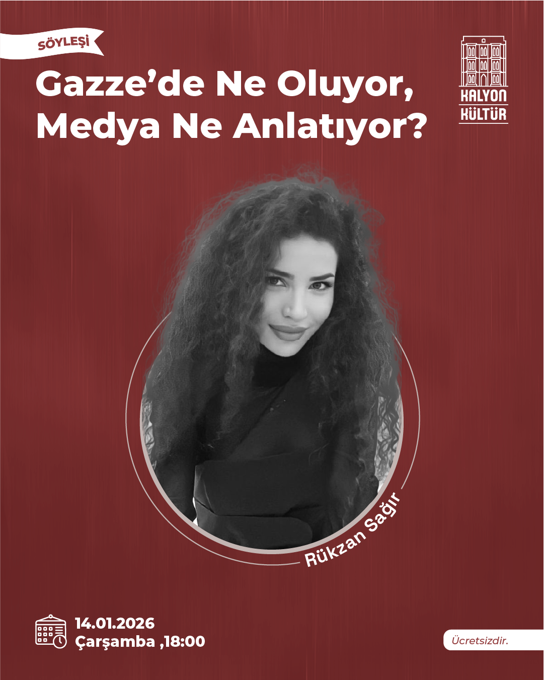 Gazze’de olan biteni anlamaya çalışırken, aslında bize neyin anlatıldığını, neyin bilinçli olarak eksiltildiğini de sorgulamak zorundayız. Rükzan Sağır, “Gazze’de Ne Oluyor? Medya Ne Anlatıyor?” başlıklı bu konuşmada, savaşın kendisinden çok onun haberleştirilme biçimine odaklanıyor; başlıkların, kelime seçimlerinin, görüntülerin ve sessizliklerin nasıl bir algı rejimi kurduğunu görünür kılıyor. Gazze’yi bir “gündem” olarak değil, sürekli bastırılan bir hakikat alanı olarak ele alan Sağır, ana akım medyanın tarafsızlık iddiasını, vicdan ve sorumluluk ekseninde yeniden düşünmeye davet ediyor.