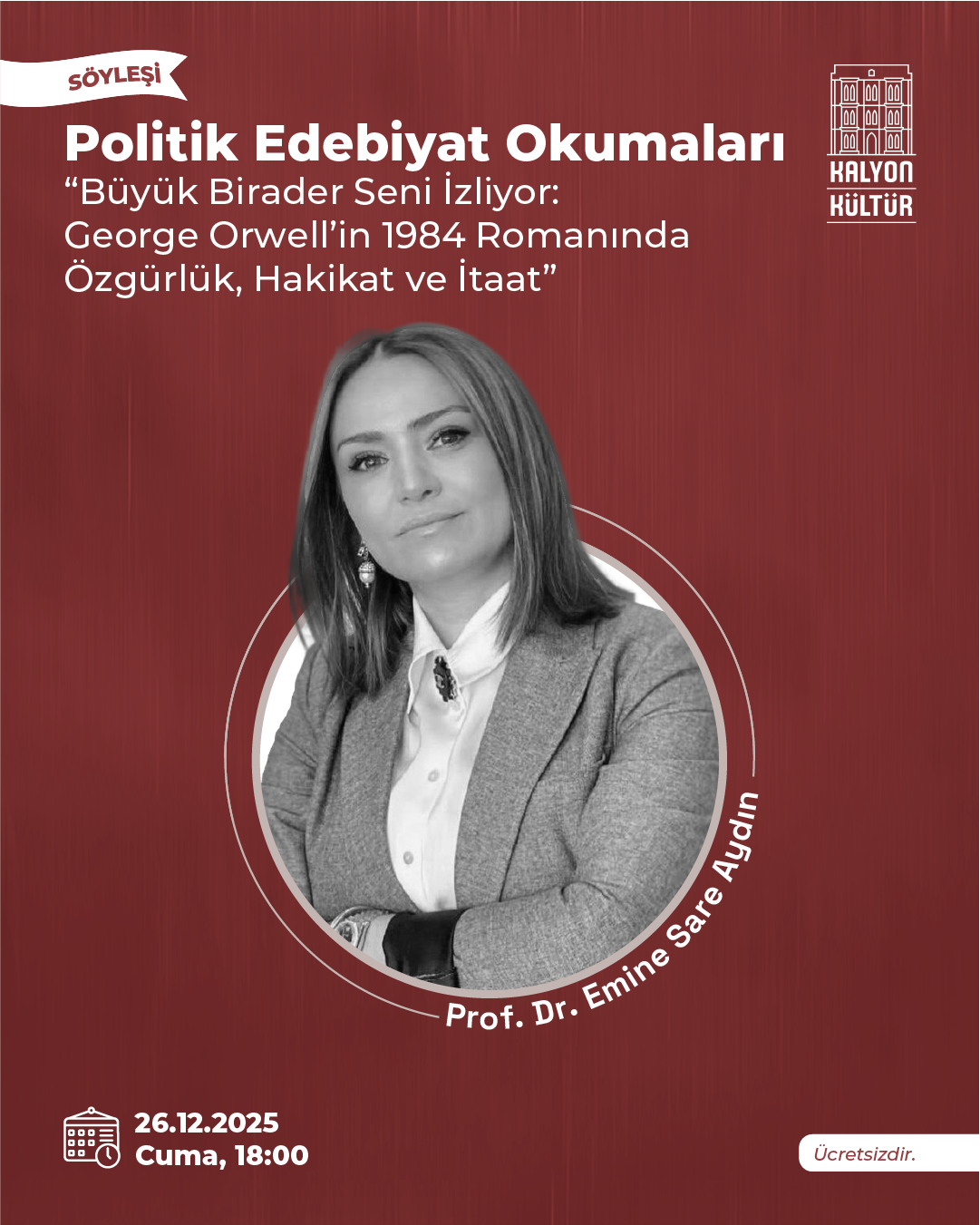George Orwell’in 1984 adlı distopyası, bireyin düşünce özgürlüğünün, dilin ve hakikatin nasıl kontrol altına alınabileceğini çarpıcı biçimde gözler önüne serer. Bu konferansta totaliter rejimlerin insan zihni üzerindeki tahakkümü, “gerçek”in manipülasyonu ve korku toplumunun inşası üzerine durulacaktır. Winston Smith’in içsel isyanı üzerinden, günümüz dijital çağında gözetim, propaganda ve bireysel direniş kavramları tartışılacaktır. Orwell’in uyarısı, sadece bir roman değil; geçmişi, bugünü ve geleceği sorgulatan bir insanlık aynası olarak ele alınacaktır.