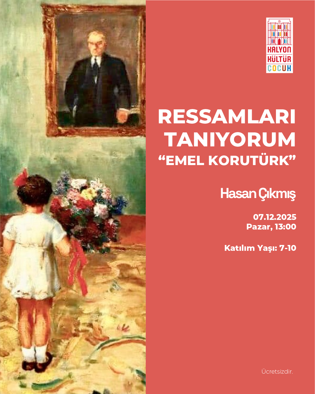 Cumhuriyet’in sanatla bütünleşmesinde öncü isimlerden olan Emel Korutürk, Türkiye’de çağdaş sanatın kamusal alanda yer bulmasında önemli bir rol oynadı.  Ankara Devlet Resim ve Heykel Müzesi’nin kuruluşuna yaptığı katkılar kalıcı bir miras bıraktı. Kendi fırçasından çıkan “Gazi’ye Şükran” tablosu ise Cumhuriyet’e duyduğu bağlılığın güçlü bir simgesi olarak tarihimizde yerini aldı.Kültür ve Turizm Bakanlığı sanatçısı Hasan Çıkmış rehberliğinde, Emel Korutürk’ün renkli ve figürlü dünyasını çocuklarla keşfetmeye davet ediyoruz.